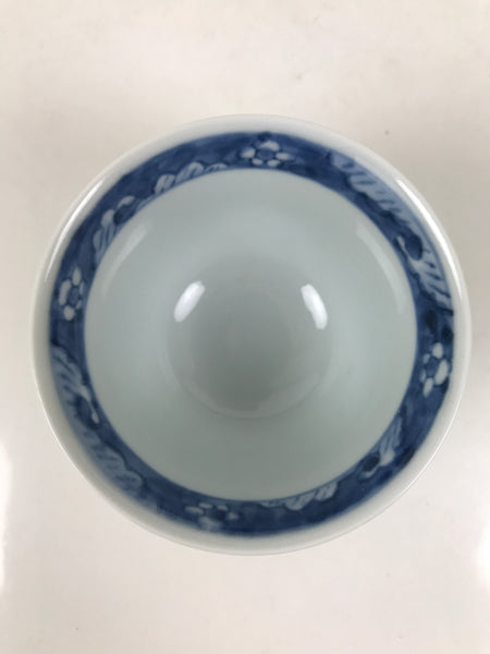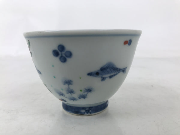 Japanese Porcelain Yunomi Teacup Pottery Vtg White Blue Hishi Fish Sencha TC591