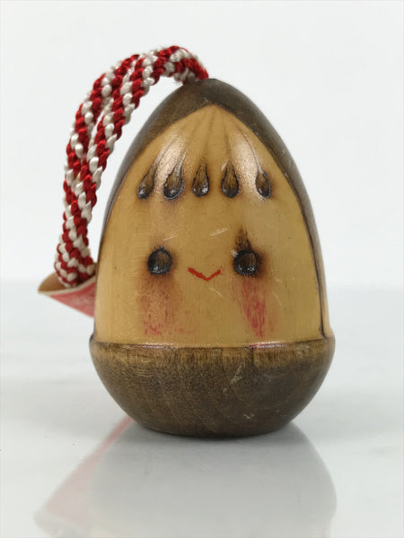 Japanese Wooden Kokeshi Doll Vtg Bamboo Shoot Traffic Safety Amulet Brown KF820