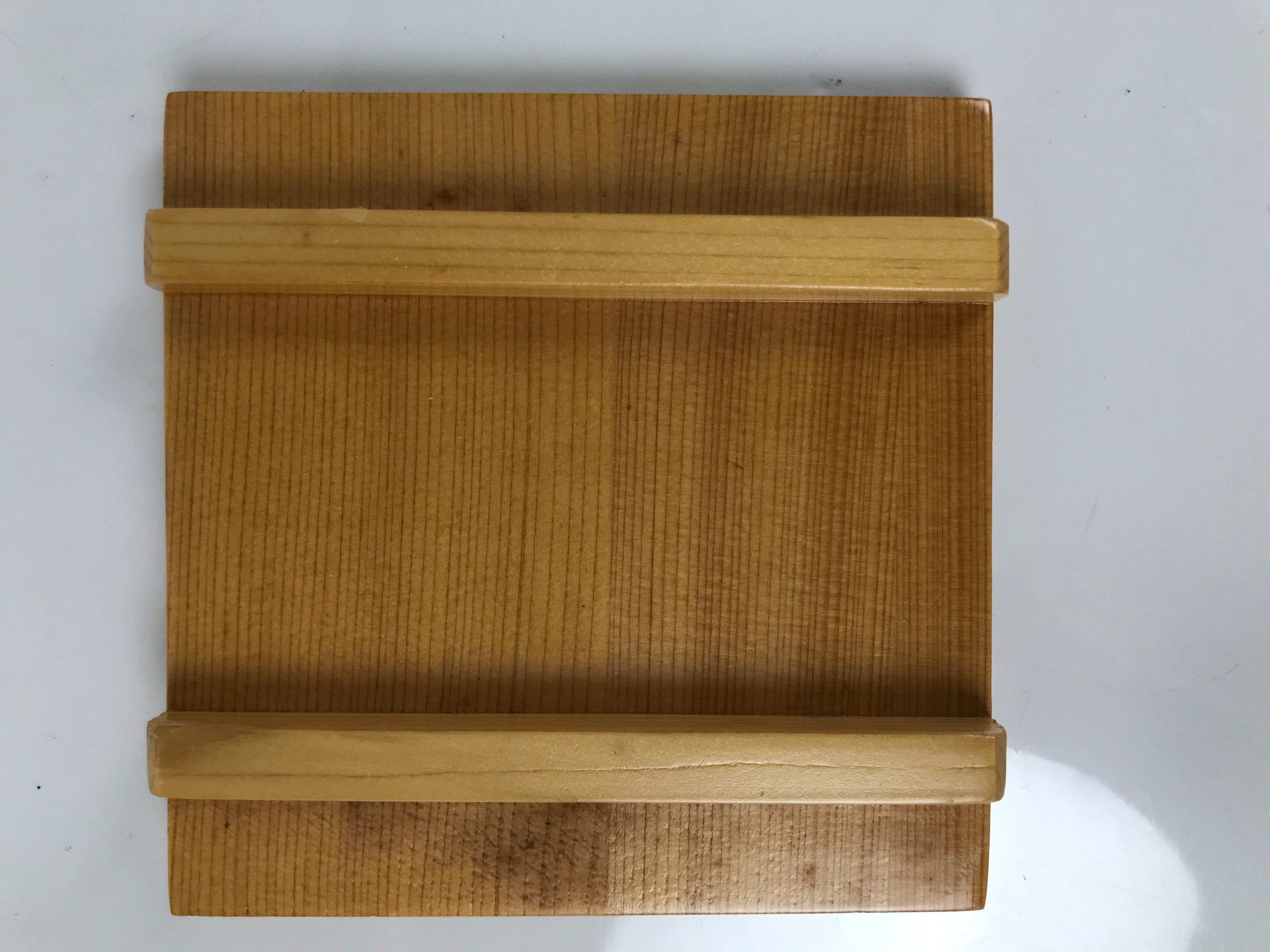 This is a vintage Japanese brushed lacquer wooden box with a lid. It is made of either cedar or cypress and brushed with a clear coat of lacquer to allow the fine natural wood grain to shine through. This piece is used as a serving dish for one of many small and elegant courses during a traditional kaiseki meal set.
