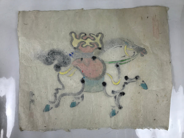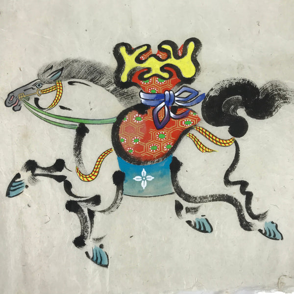 Japanese Calligraphy Painting Horse Vtg Wish Fulfillment Paper Ema FL368