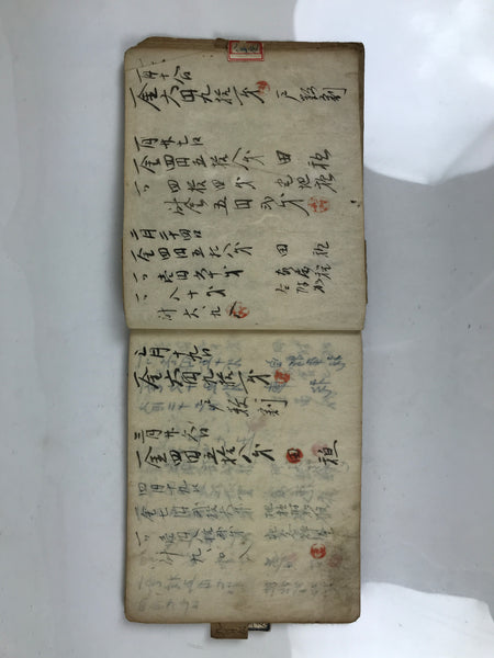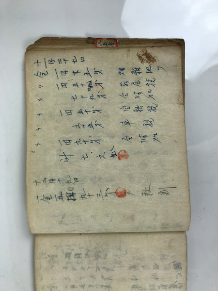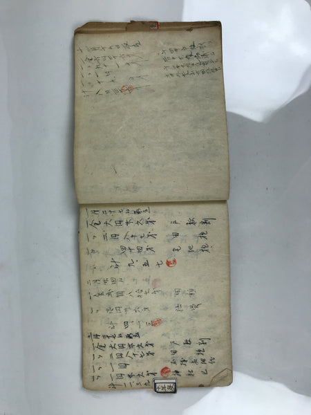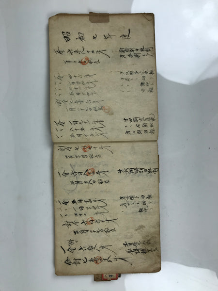 This is a vintage Japanese tax record book called nozei tsuchicho in Japanese. It is made of washi paper and is handwritten. It contains a list of different taxes, amounts and dates, and covers the fiscal (?) years Showa 7(1932) to 11 (1936).
