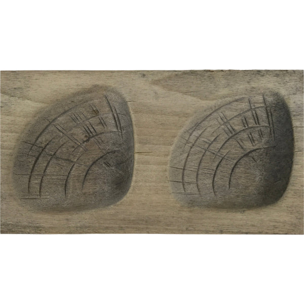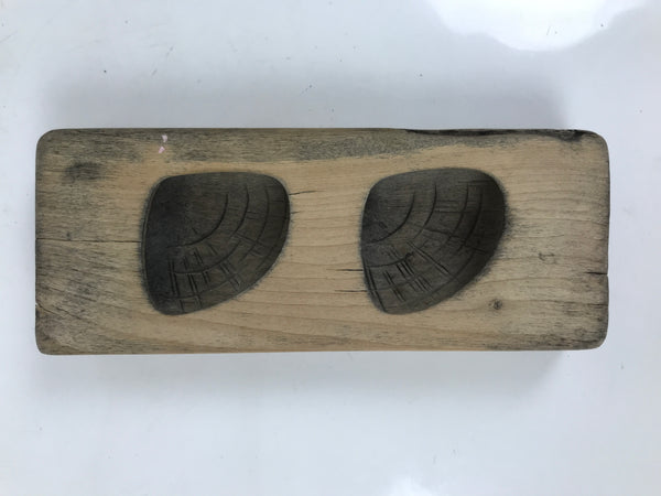 This two-panel kashigata mold is carved with the design of two clams (hamuguri). This mold can be used to make sweets or as an eye-catching decorative item.