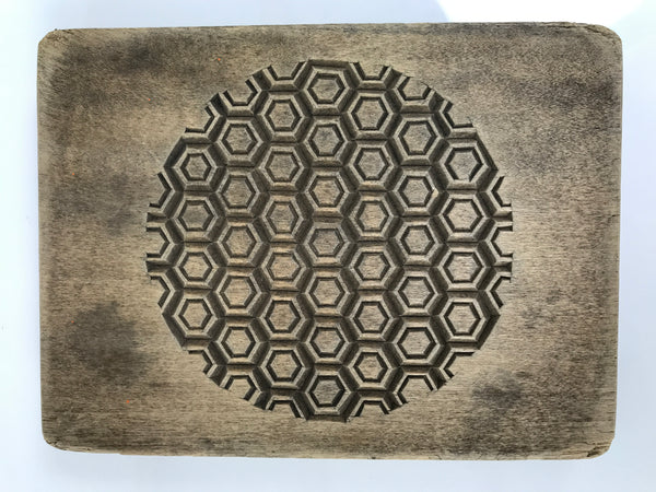 Japanese Wood Kashigata Cake Mold Vtg Wagashi Kikkou Hexagonal Back Plate Kg780