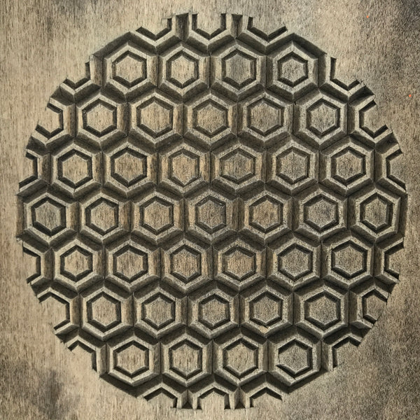 This single-panel kashigata mold is carved with a hexagonal (kikkou/kikkoumon) pattern in a circle. Kikkou resembles turtle shells, which symbolize longevity. It is used with other simple kashigata molds as a patterned back plate. This mold can be used to make sweets or as an eye-catching decorative item.