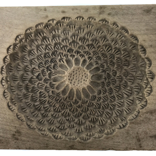 This two-panel kashigata mold is carved with the design of a large, carved, highly detailed chrysanthemum flower (kiku). This mold can be used to make sweets or as an eye-catching decorative item.