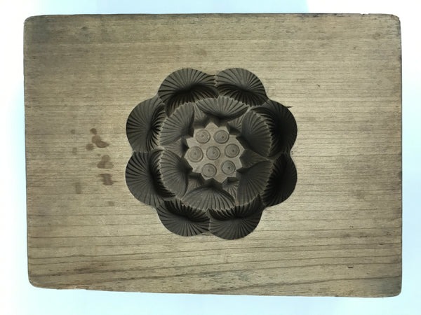 Japanese Wooden Kashigata Cake Mold Vtg Sweet Wagashi Lotus Flower Hasu Kg777