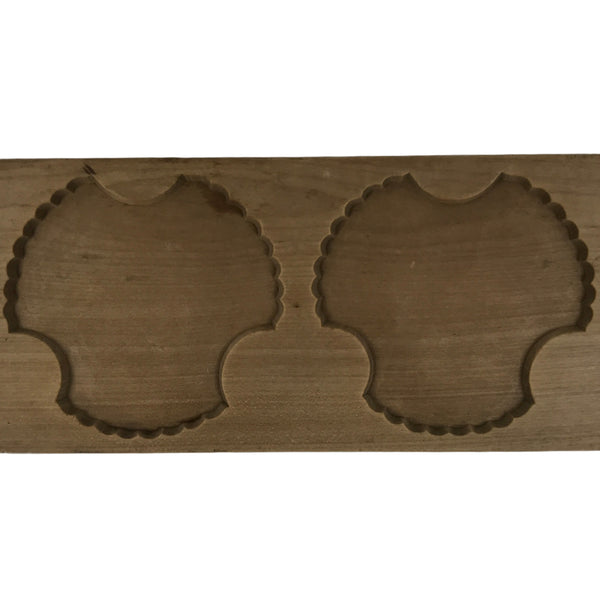 This two-panel kashigata mold is carved with the design of two simple traditional-style snowflakes (yukiwa). Also called "snow rings", yukiwa come in a variety of different shapes that have different meanings. This particular design is one meant to be simple and easy to use to make sweets. This mold can be used to make sweets or as an eye-catching decorative item.