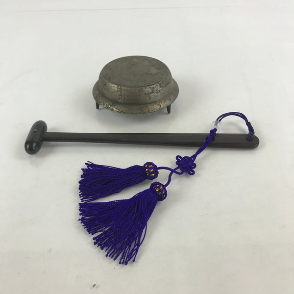 It is a Japanese vintage Buddhist altar fitting "Shogo". It is a metal bell used during worship. It is usually placed on a tatami mat stand and struck with a Shimoku stick to make a sound. It is used to keep the rhythm during nembutsu. (Used in the Tendai, Shingon, and Jodo sects)