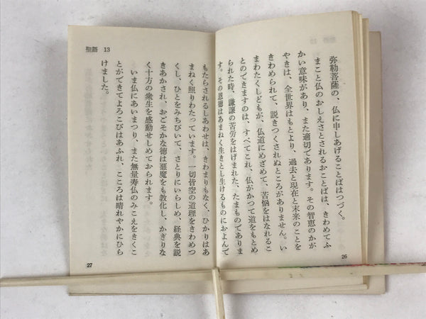 This is a vintage Japanese Buddhist scripture (seigo) book. This book has a red cover with the title on the front and an inscription on the back. It was published in 1958.