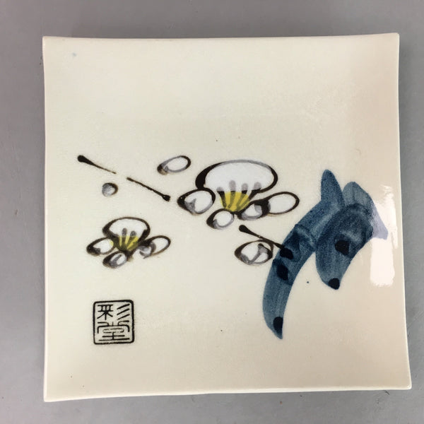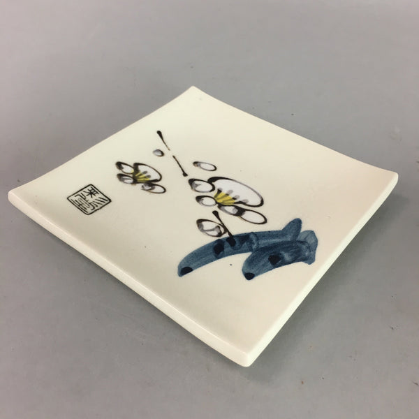 Japanese Ceramic Square Plate Kozara Seto ware Vtg Floral Crackle Pottery PT787