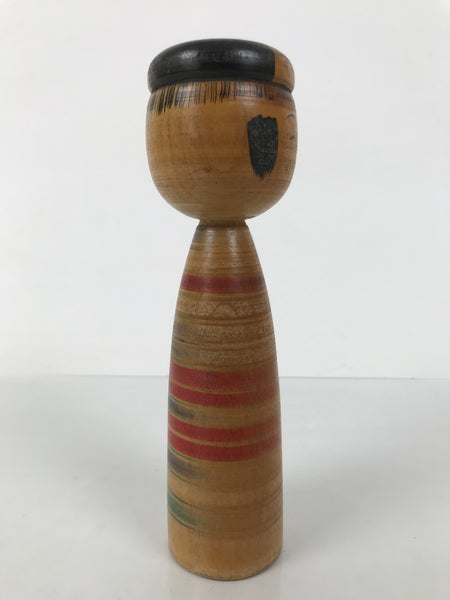 Japanese Classic Wooden Kokeshi Doll Vtg Black Red Brown Traditional Craft KF784