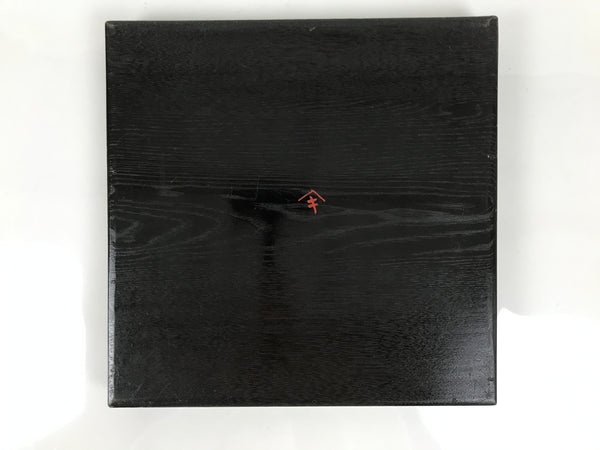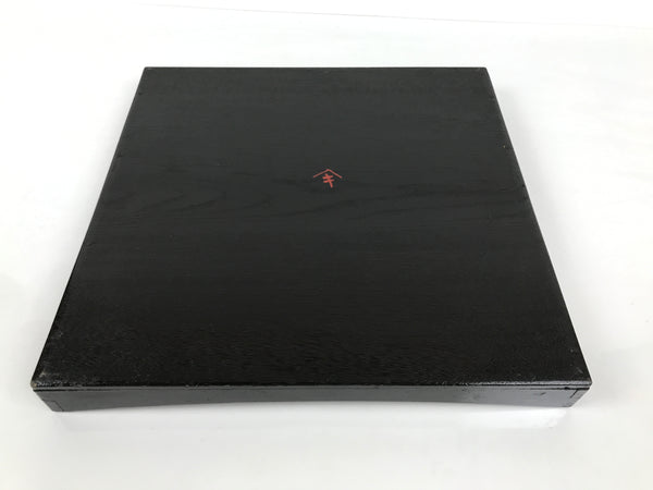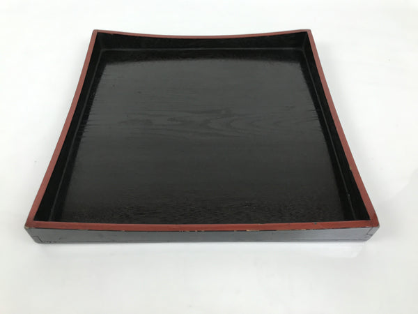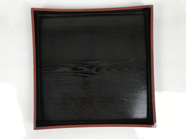 Japanese Lacquered Wood Serving Tray Obon Vtg Square Curved Red Edge Black L574