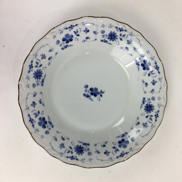 Japanese Porcelain Soup Bowl Maruta Japan Kasuga Ware Round Blue Flower PP727