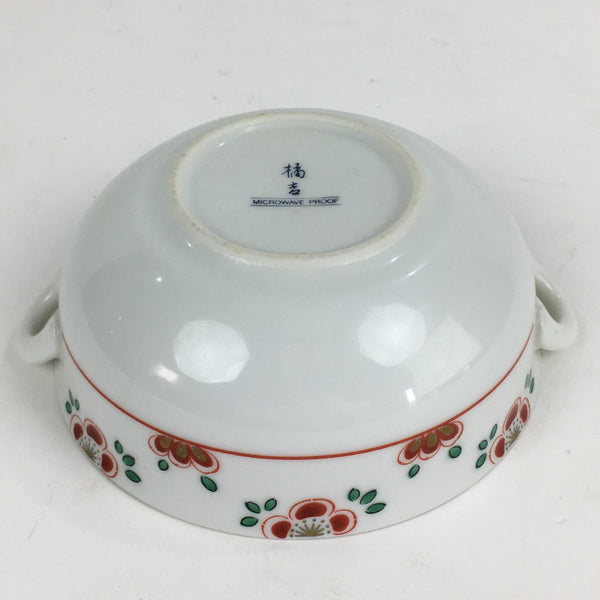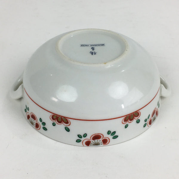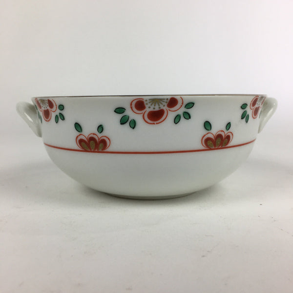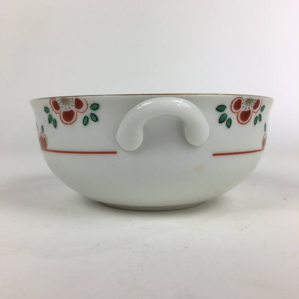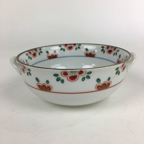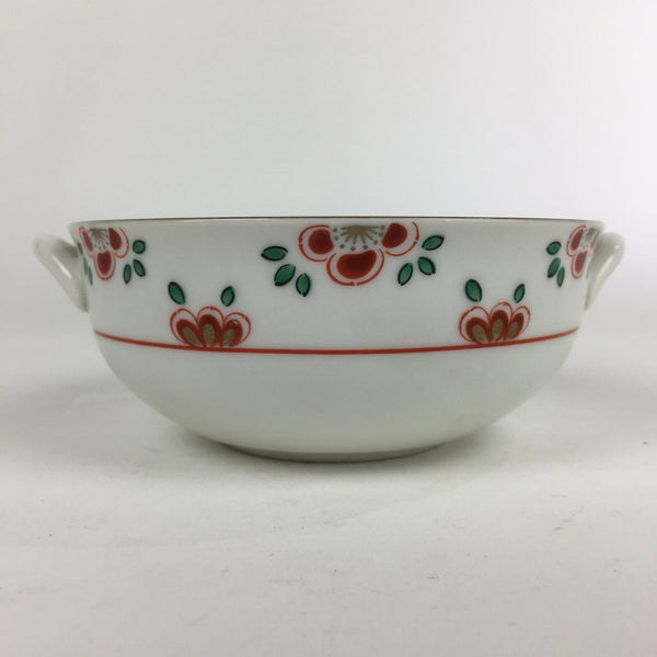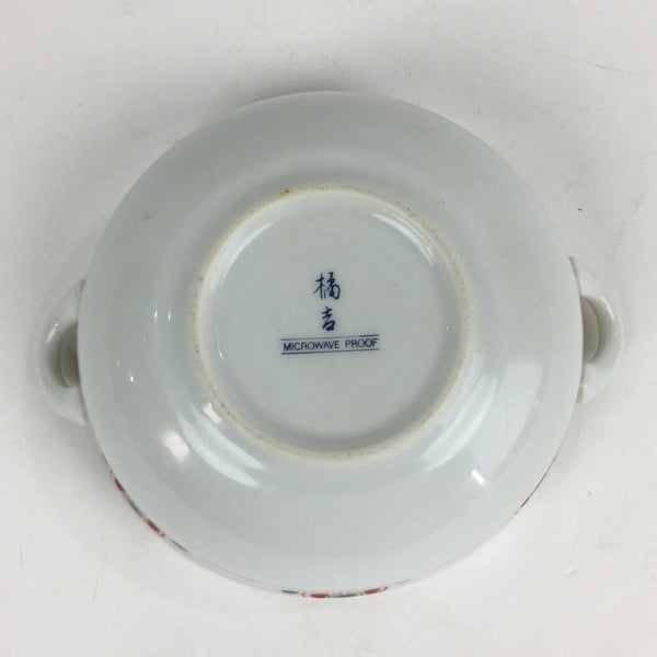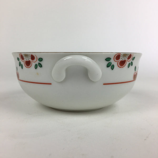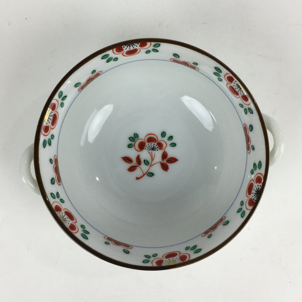 Japanese Porcelain Soup Bowl Vtg Tachikichi Round Handles Flower PP926