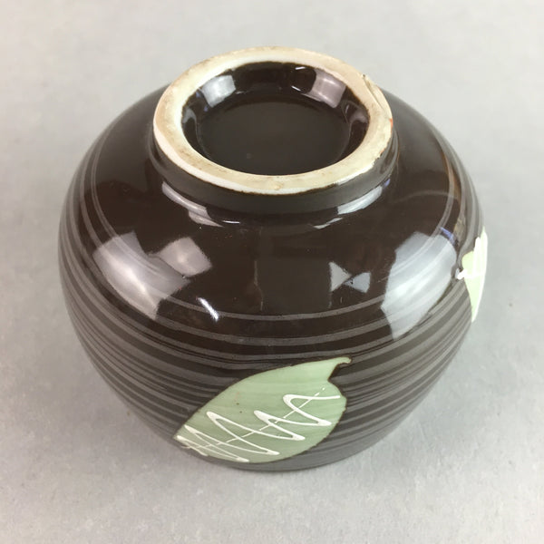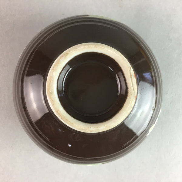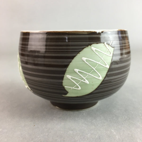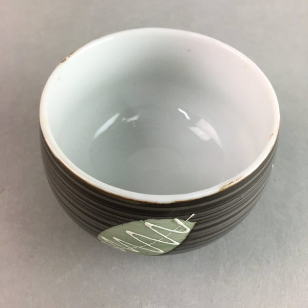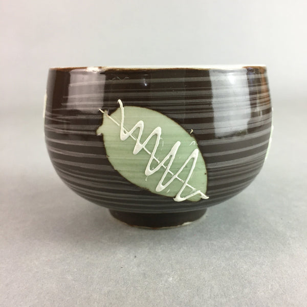 Japanese Porcelain Teacup Yunomi Vtg Sencha Brown Green Leaf Stripe TC147