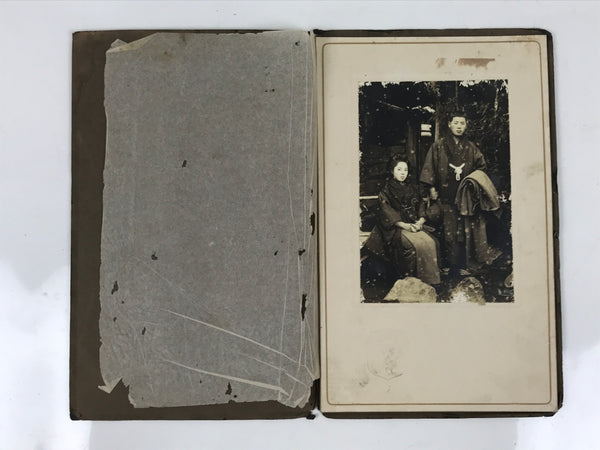 Antique Japanese Taisho Young Couple Photograph Portrait Kimono Black White PH26