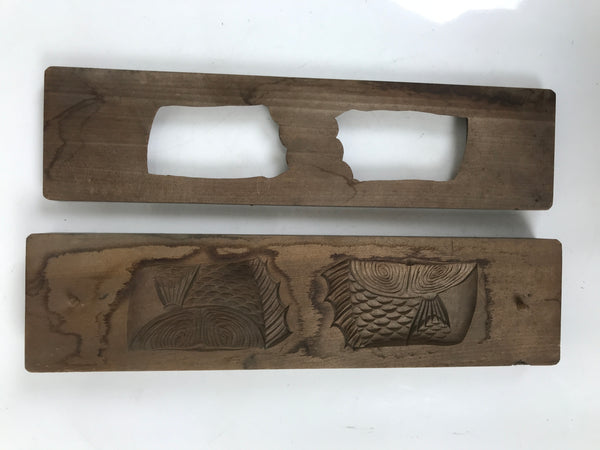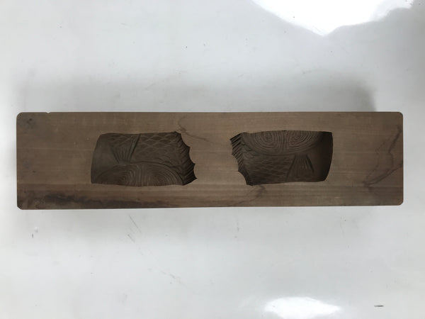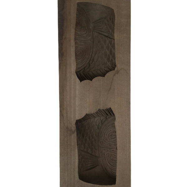 This two-panel kashigata mold is carved with the design of two pieces of madai (sea bream) that have been cut. This mold can be used to make sweets or as an eye-catching decorative item.