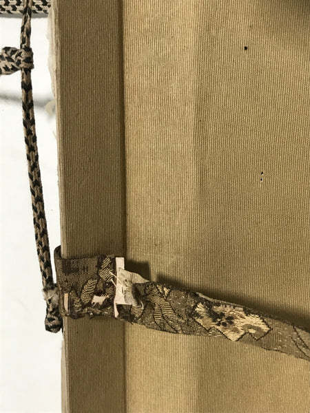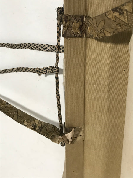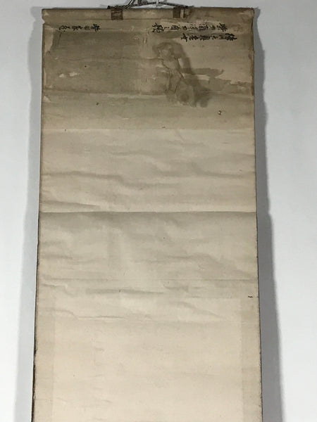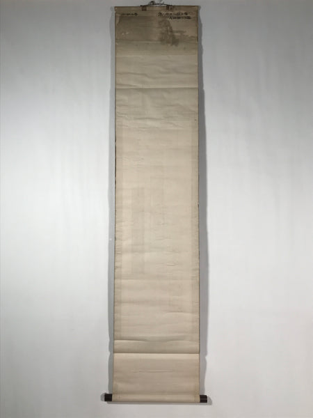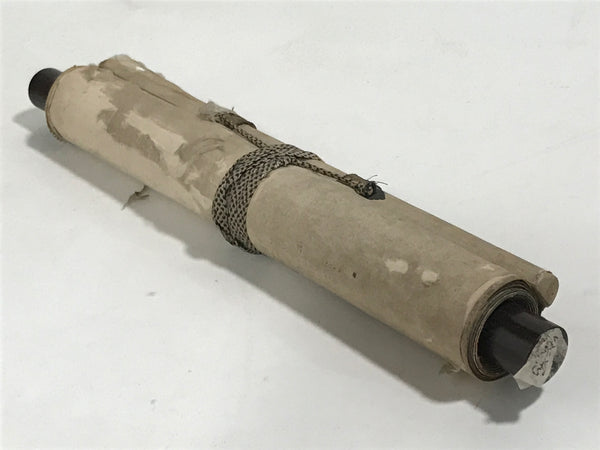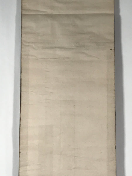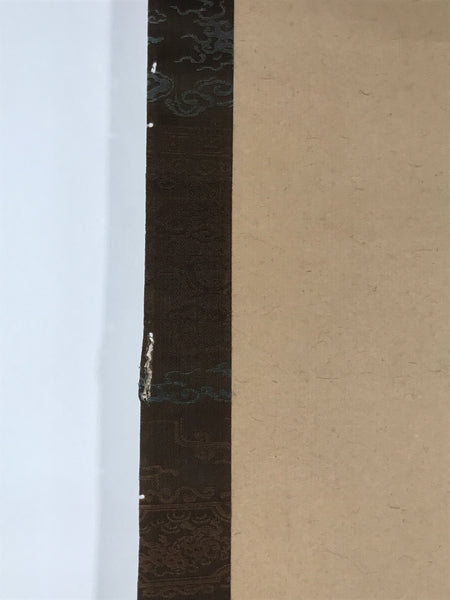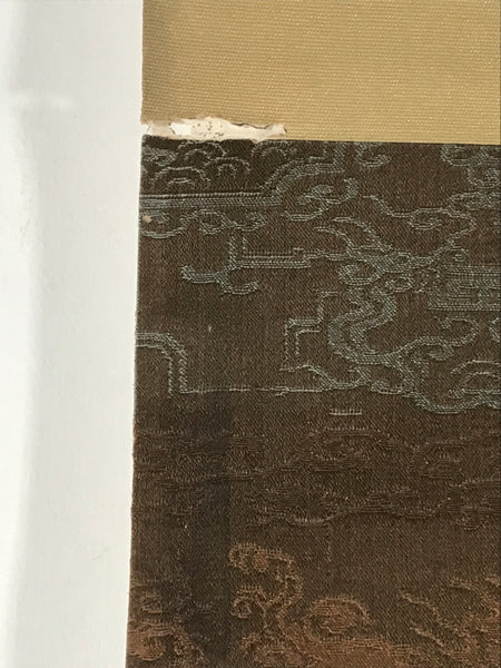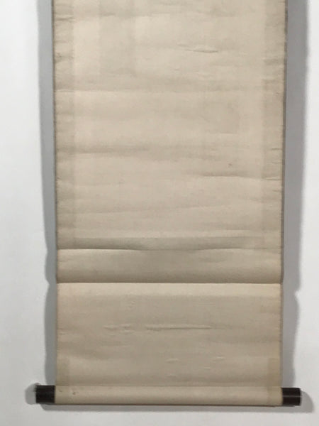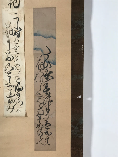 This vintage Japanese hanging scroll (kakejiku or makimono) features calligraphy of poems written in the sosho loose style. Three different stripes of paper are pasted on the base of the scroll.