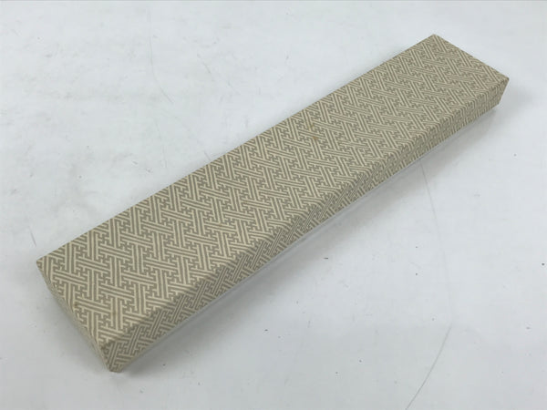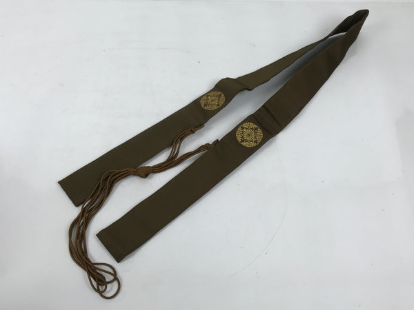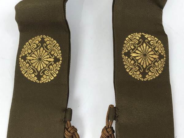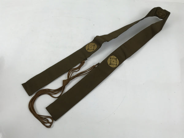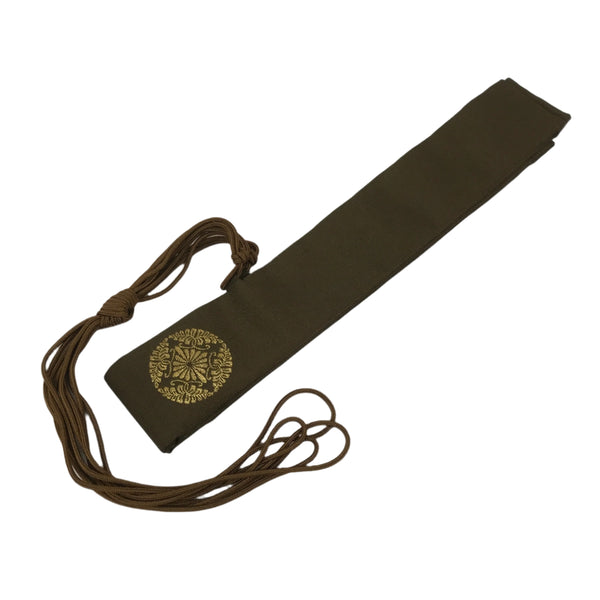 This Japanese Buddhist costume surplice (wagesa or hangesa) is worn around the neck by Buddhist monks during services. It is brown with gold embroidery and has a brown cord. It comes with the original paper box.
