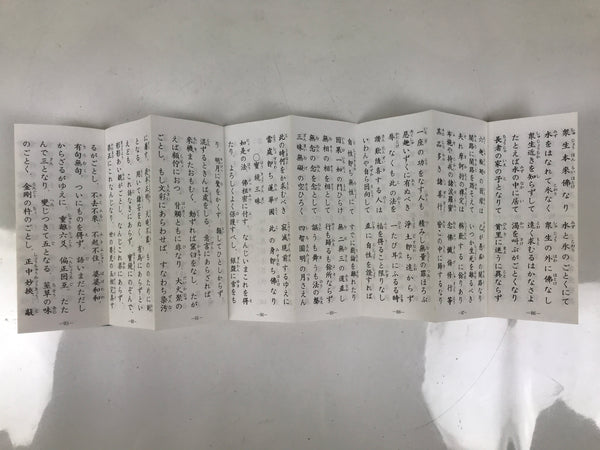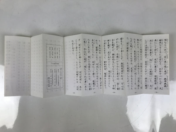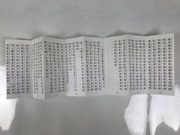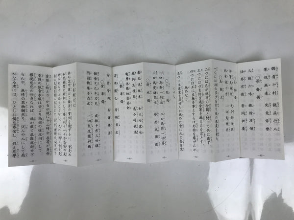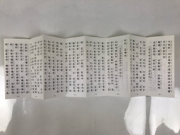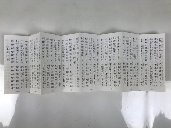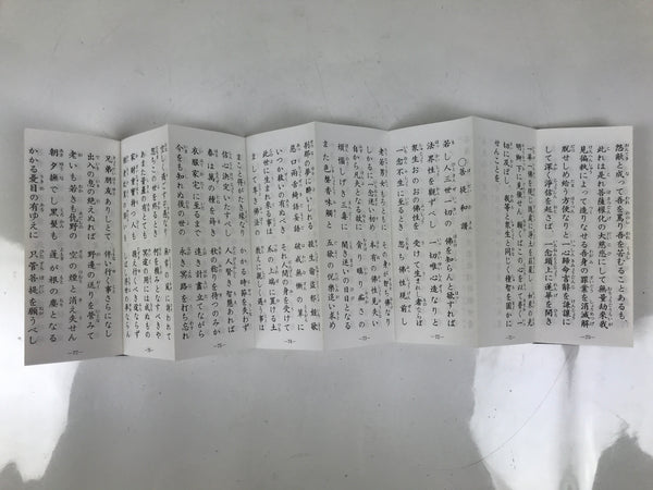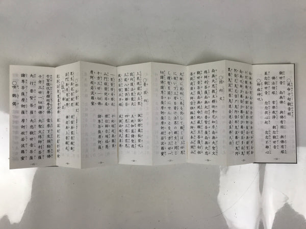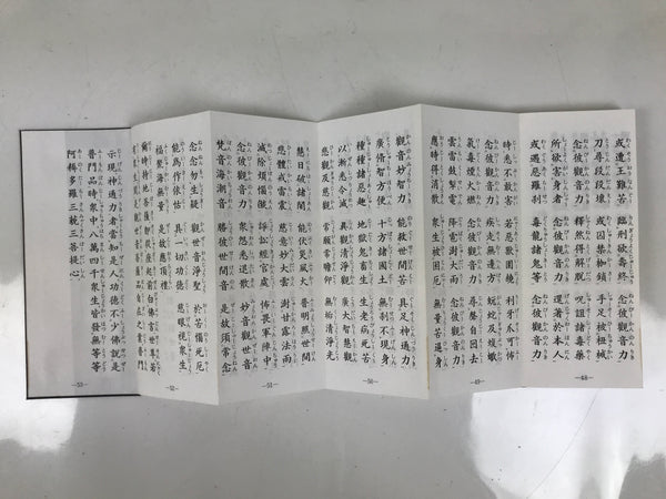 This vintage Japanese Buddhist accordion-type book with a brown cover features several texts and sutra for believers of the Linji (or Rinzai in Japanese) School for the practice of zen such as the Heart Sutra and the Enmei Jukku Kannon Gyo (The sutra of Kannon Bodhisattva in 10 phrases).