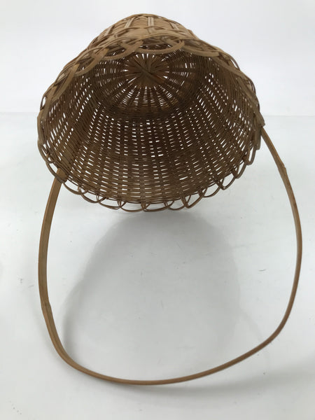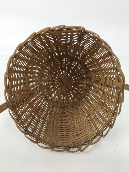 Japanese Handwoven Bamboo Basket Vtg Kago Ikebana Arrangement Handle Brown B261