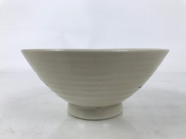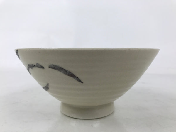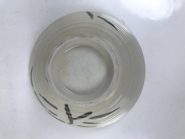 This item is a vintage Japanese ceramic rice bowl. The design on this wide-mouthed bowl is brown and looks like bamboo or other narrow leaves. Overall, it is a very light beige color. It can also be used for side dishes.