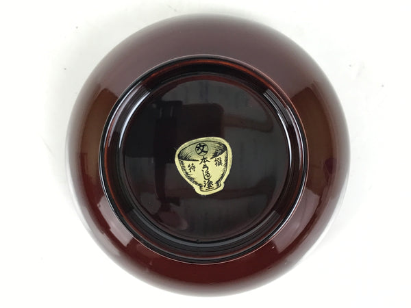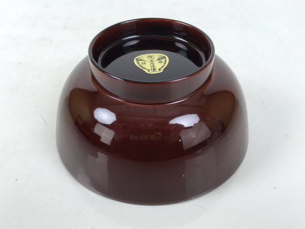 This is a vintage Japanese Wajima wooden lacquered rice bowl. It is a classic red on the inside with the rest a rich brown color, made with natural lacquer. It is a beautifully handcrafted addition to any traditional Japanese dinnerware set.