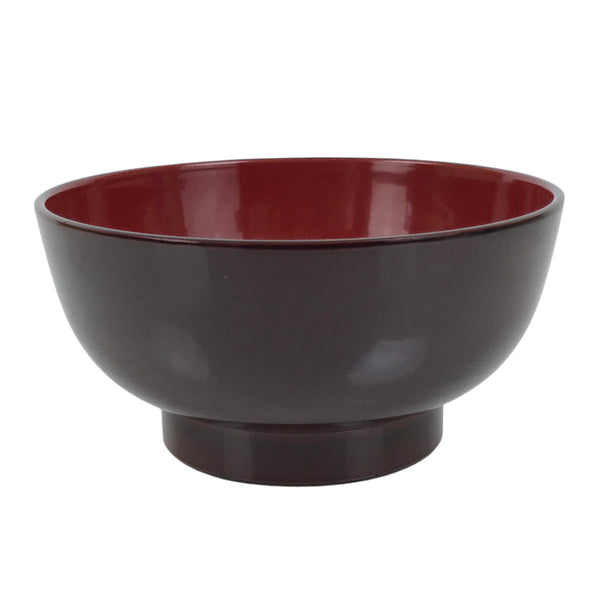 This is a vintage Japanese Wajima wooden lacquered rice bowl. It is a classic red on the inside with the rest a rich brown color, made with natural lacquer. It is a beautifully handcrafted addition to any traditional Japanese dinnerware set.