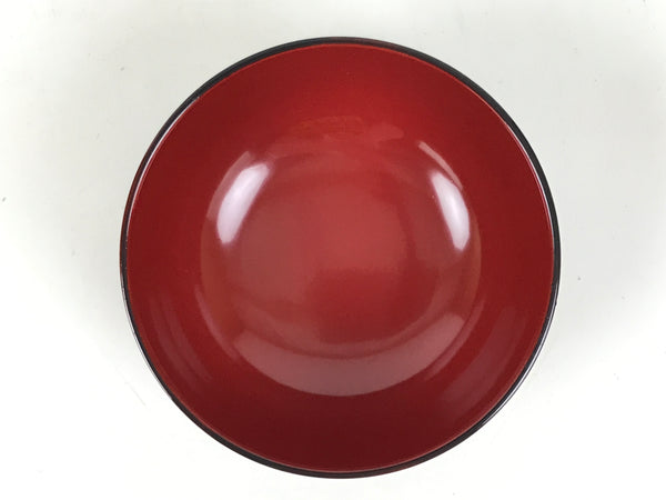 This is a vintage Japanese Wajima wooden lacquered rice bowl. It is a classic red on the inside with the rest a rich brown color, made with natural lacquer. It is a beautifully handcrafted addition to any traditional Japanese dinnerware set.