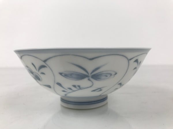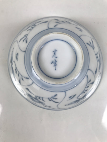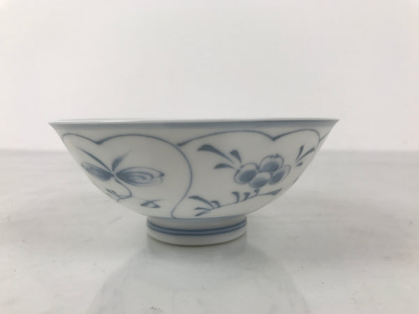 Japanese Porcelain Mino Ware Rice Bowl Chawan Vtg White Blue Plant Vine Tea Y506