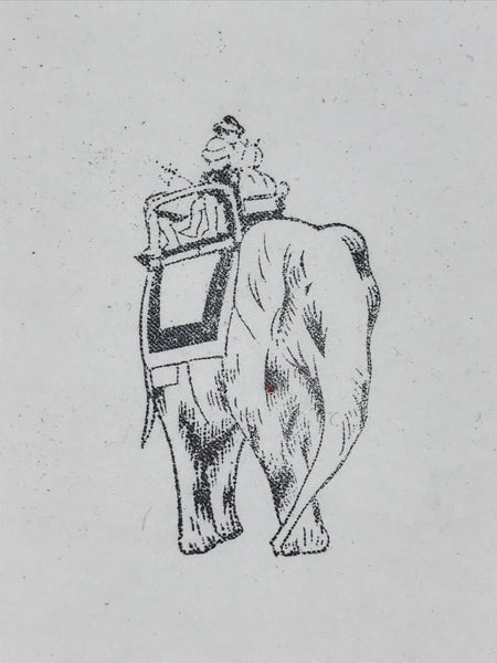 Japanese Rubber Stamp People Riding Elephant Vtg Sponge Base Stationary HS261