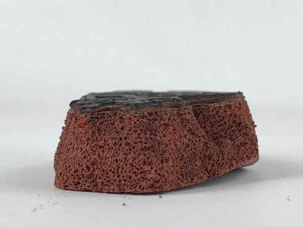 This is a Japanese vintage rubber stamp attached to a sponge-like base. The stamp features three people wearing hats and riding an elephant. The sponge base has hardened. This stamp can be used as it or you can remove the rubber to place it on another base.