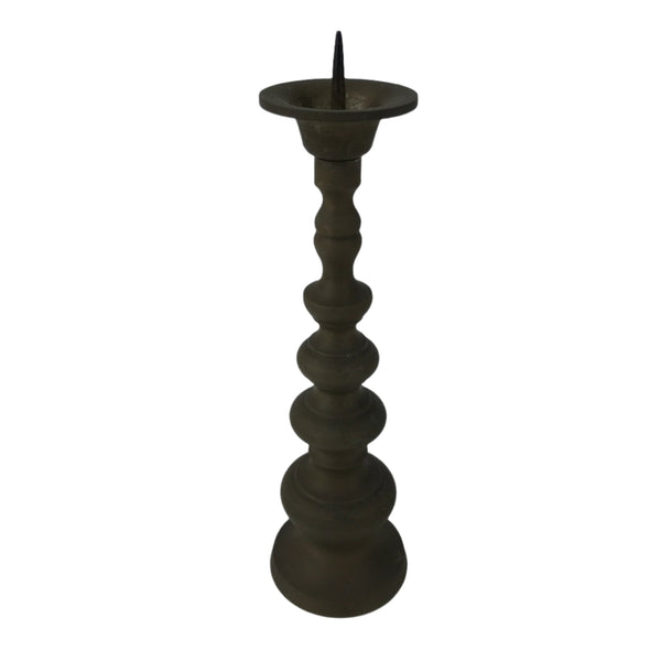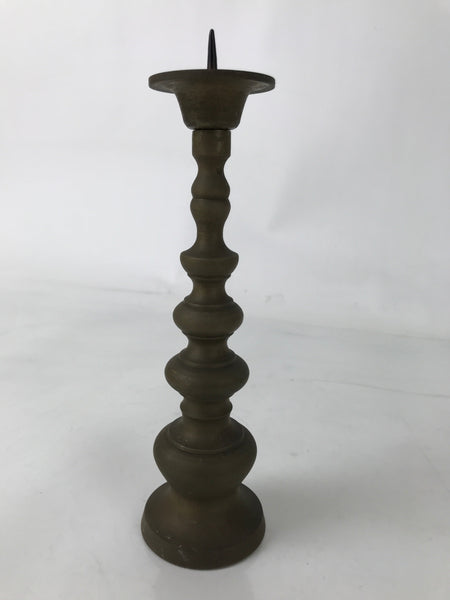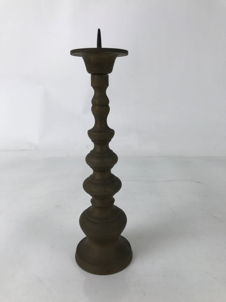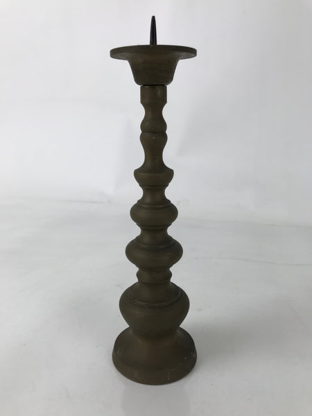 This item is a Japanese vintage Buddhist altar candle holder stand. This tall, slender metal candlestick is brown and has a very simple, classic design. The top part can be removed. Candlestands or candlesticks are basic Buddhist tools used in most sects and an essential for Buddhist altars (Butsudan).