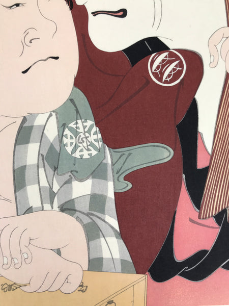 Japanese Ukiyoe Toshusai Sharaku Kabuki Actors Portrait Woodblock Print FL451