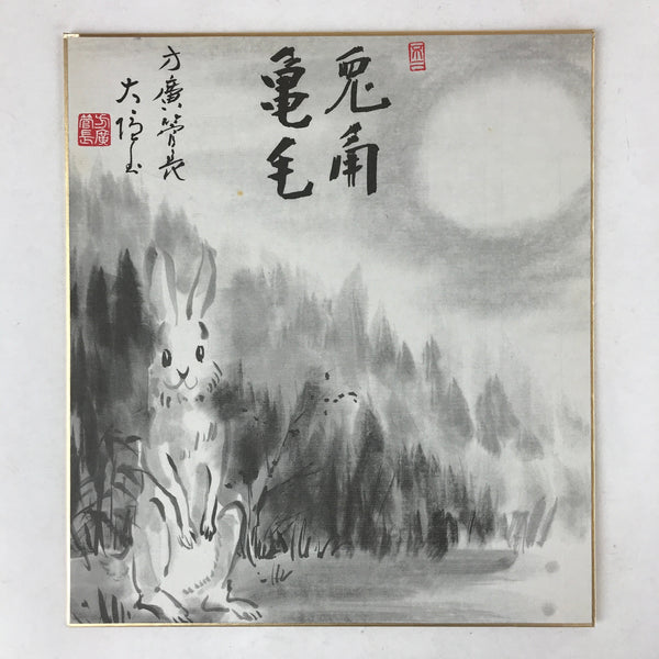 Japanese Zodiac Shikishi Art Board Painting Hare Rabbit Moonlight Monochrome A59
