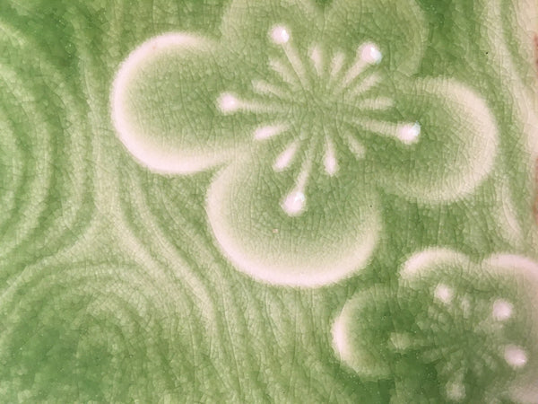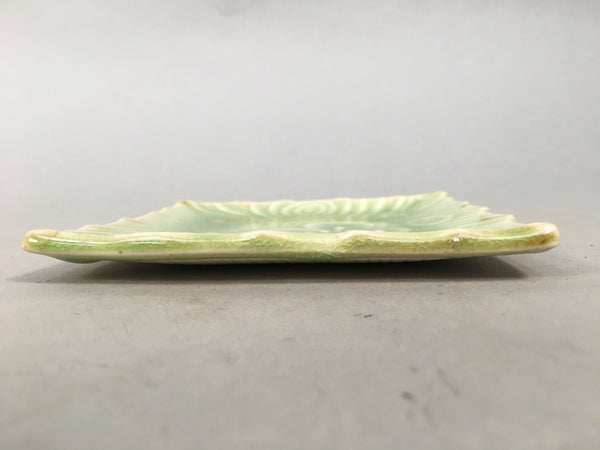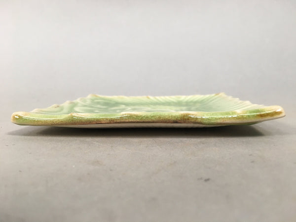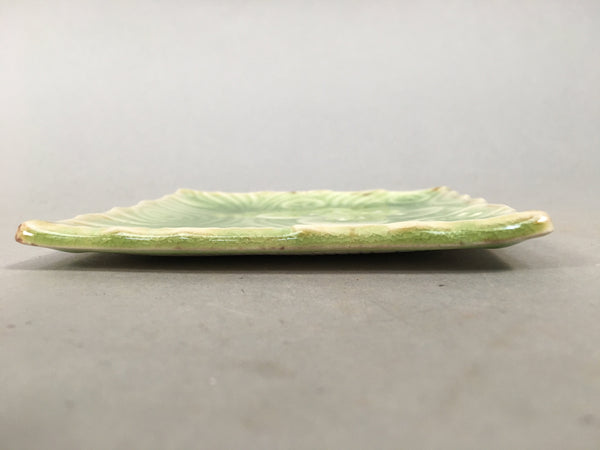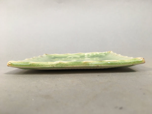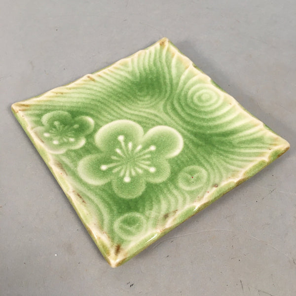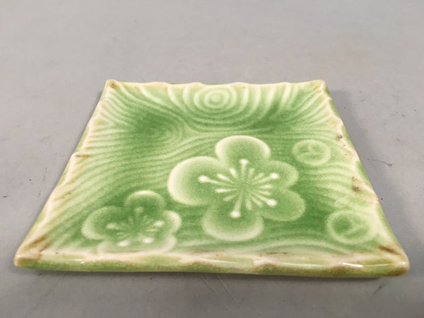 Japanese Ceramic Small Plate Kozara Vtg Square Green Plum Blossom Pottery PP439