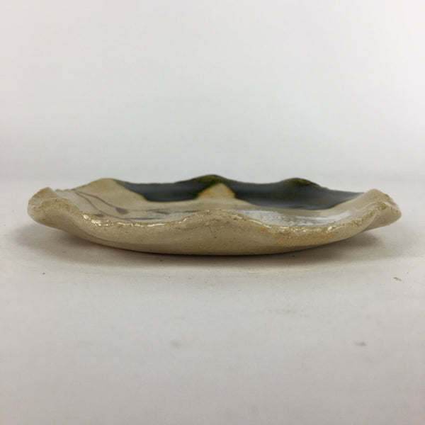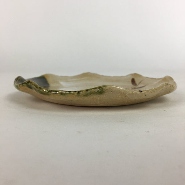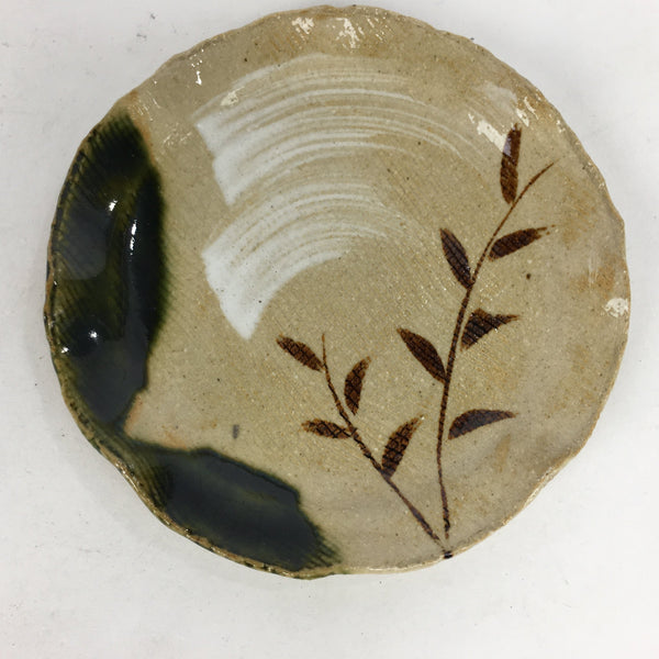 Japanese Ceramic Small Plate Oribe ware Kozara Vtg Round Pottery Bamboo PP624
