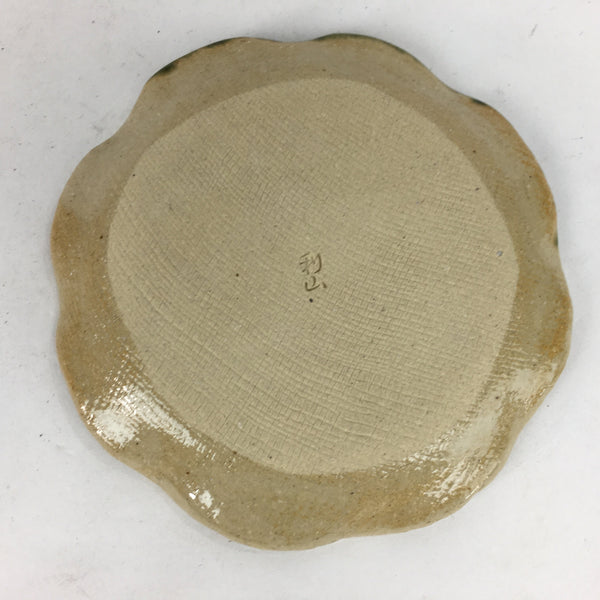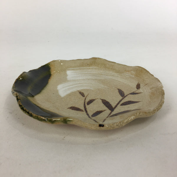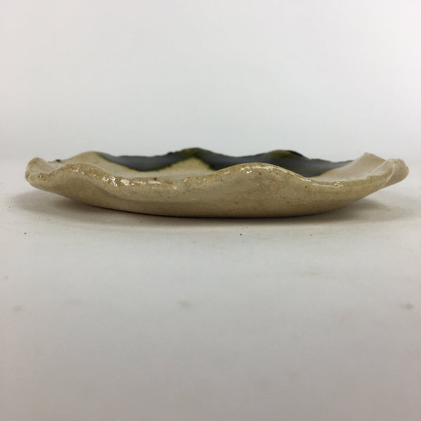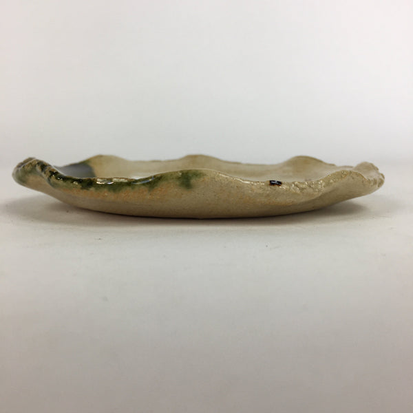 Japanese Ceramic Small Plate Oribe ware Kozara Vtg Round Pottery Bamboo PP628