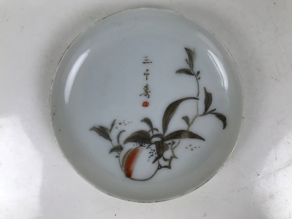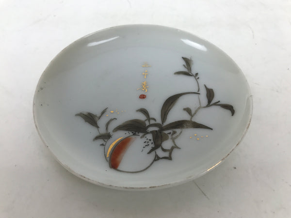 Japanese Porcelain Small Plate Mamezara Vtg Side Dish White Peach Momo Gold Y432