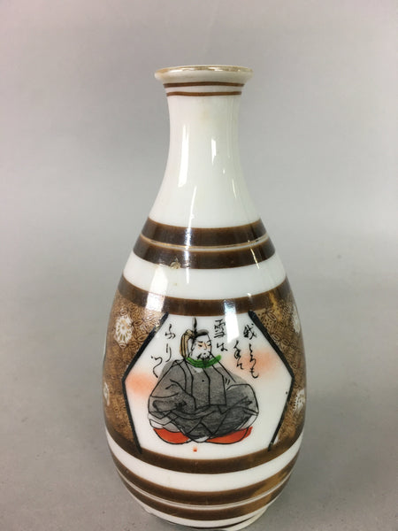 Japanese Porcelain Sake Bottle Kutani ware Vtg Tokkuri Poem Kimono TS219