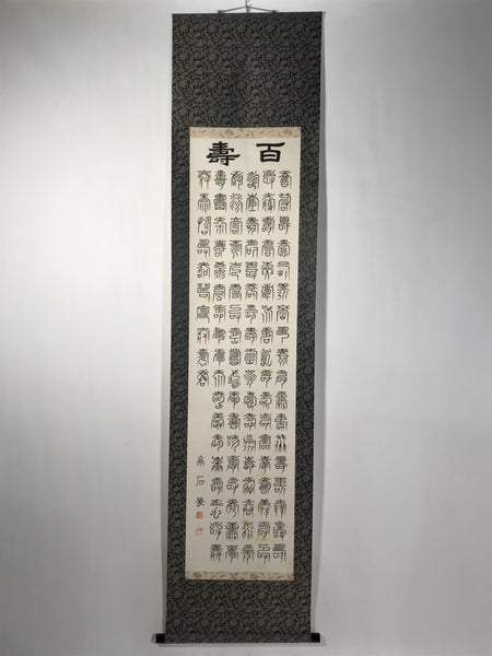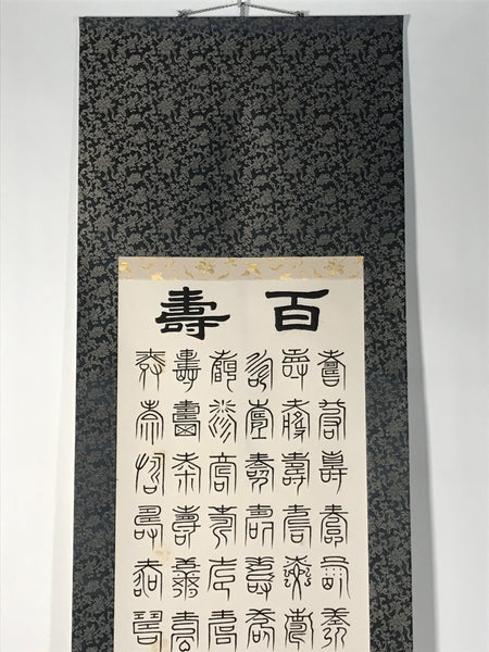 Japanese Boxed Hanging Scroll Kakejiku 100 Longevity Hyakujyu Calligraphy KJ163