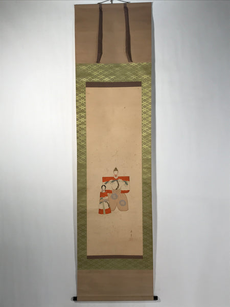 Japanese Boxed Hanging Scroll Vtg Kakejiku Standing Hina Dolls Portrait KJ159