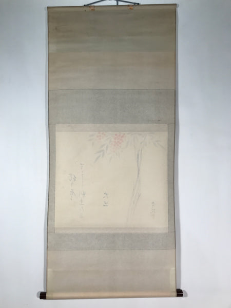 Japanese Hanging Scroll Vtg Kakejiku Sacred Bamboo Nanten Winter Red Plants KJ67