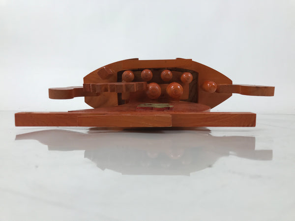 This is a vintage Japanese brushed lacquer wooden statue that depicts the Treasure Ship (takarabune) most notably used by the Seven Lucky Gods (shichifukujin). It is made up of many simple figures without much fine detail giving the entire statue a more abstract, minimalist look. It comes with the original paper box.