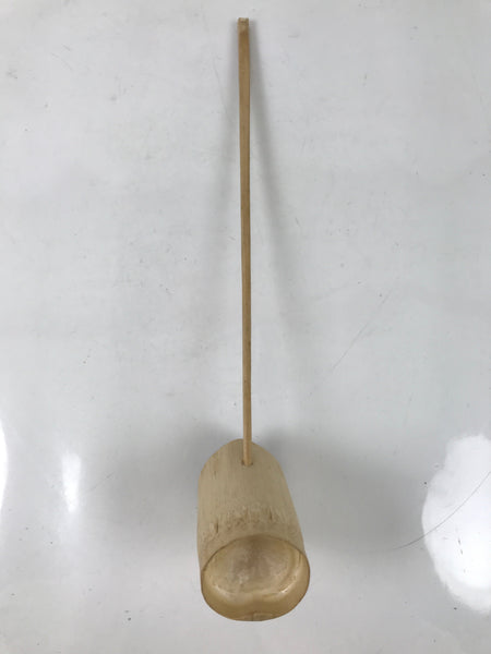 This is a vintage Japanese traditional tea ceremony utensil called hishaku. It is used for scooping hot water from a teapot or chagama into the matcha chawan tea bowl. This ladle is made entirely of bamboo with a long handle and a longer finely hallowed-out scoop, leaving it lightweight and easy to hold.