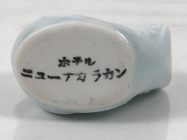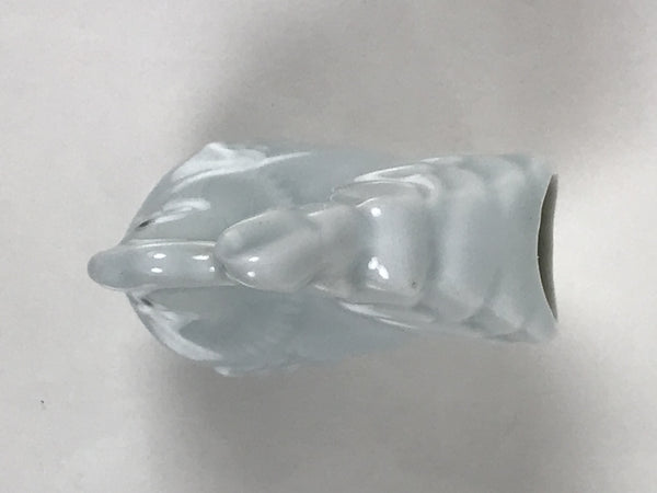 This is a vintage Japanese porcelain toothpick holder, also called youjitate. Glazed a soft light blue color, it is in the shape of a rooster, one of the zodiac animals. It has subtle details, and has an open hole at the back of the tail feathers for storing toothpicks.