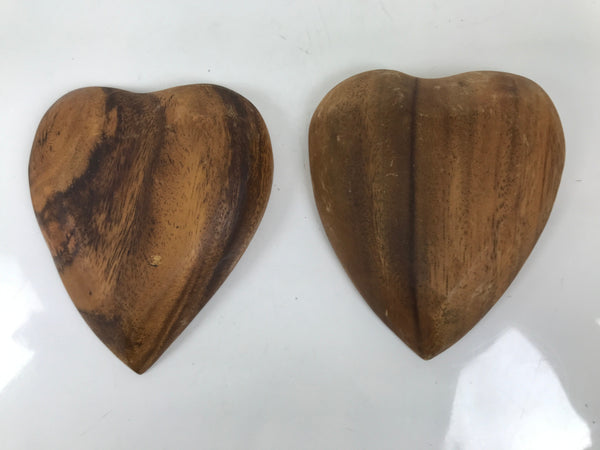 This is a pair of Japanese vintage small trays with a heart shape. These are brown with a wooden grain underneath a translucent lacquer. It can be used for storing keys, accessories, and other small items.