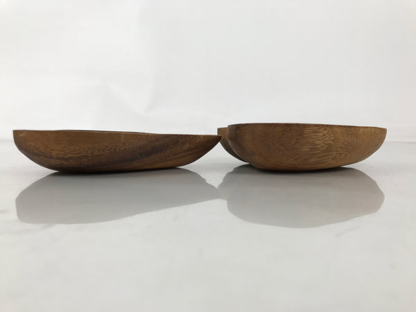 Japanese Lacquered Wooden Small Tray Pair Brown Heart Accessory Plate Bowl L516