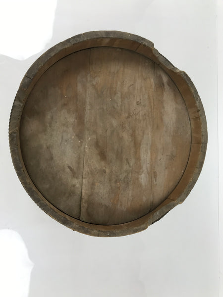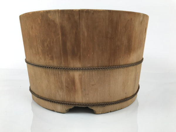 Japanese Handmade Wooden Oke Bucket Vtg Water Rice Storage Brown Twist Wire BK52