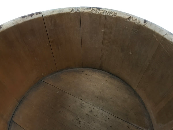 This is a traditional, handmade Japanese wooden bucket made for storing water, rice, or other food products. It is also commonly used for making pickles. Stout, sturdy, and with a natural brown color, it is made from precisely cut slats of wood held together by four narrow, twisted metal wires via tension. This beautiful classic piece is also perfect for adding traditional flair to any home or office decor.